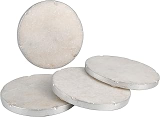 Thirstystone NMCH001 Old Hollywood Round White Marble Coasters with Silver Tone Edge (Set of 4) by Thirstystone