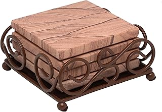 Thirstystone GG6-H50 Sandstone Coasters with Wrought Iron Holder Included, Multicolor by Thirstystone