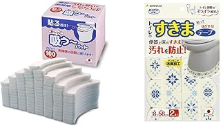 サンコー トイレ 汚れ防止 パット おしっこ吸うパット 100コ入 掃除 飛び散り 臭い対策 ホワイト 日本製 AF-26 & ズレない汚れ防止テープ おくだけ吸着 便器すきまテープ モロッコタイル ブルー 2枚入 KM-50【セット買い】