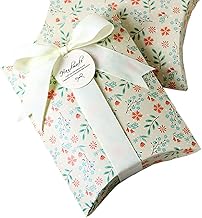 (moin moin) ラッピング ボックス 箱 袋 ピンク 小花柄 リトルフラワー リボン & タグ 付 幅10cm×高さ14cm×マチ2.8cm 5枚セット (ライトグリーン)