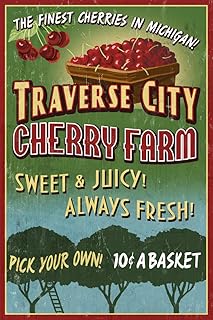 Traverse City, Michigan - Cherry Farm Vintage Sign (9x12 Art Print, Wall Decor Travel Poster) by Lantern Press