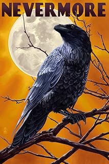 Nevermore - Raven and Moon (9x12 Art Print, Wall Decor Travel Poster) by Lantern Press