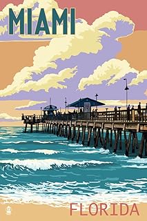 Miami, Florida - Fishing Pier and Sunset (9x12 Art Print, Wall Decor Travel Poster) by Lantern Press