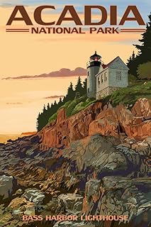 (9 x 12 Art Print) - Acadia National Park, Maine - Bass Harbour Lighthouse (9x12 Art Print, Wall Decor Travel Poster)