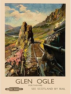 Travel Tourism Glen Ogle Highland Perthshire Scotland Railway Art Print Poster Wall Decor 12X16 Inch 旅行観光ハイランドスコットランド鉄道ポスター壁デコ
