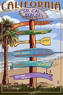 Southern California Beaches - Destination Sign (24x36 Giclee Gallery Print, Wall Decor Travel Poster) by Lantern Press