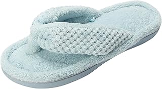 ofoot レディース コットン オープントゥ 低反発素材 室内スリッパ 滑り止めゴムソール