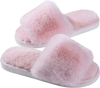 Evshine レディース 低反発素材 ファジーハウススリッパ スリッポン オープントゥ スライドスリッパ 屋内 屋外 滑り止めゴムソール