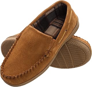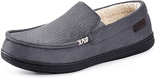DL メンズ モカシン スリッパ 屋内 屋外 スエード メンズ ハウススリッパ 低反発素材 フェイクファー 裏地 寝室スリッパ メンズ 滑り止めアウトソール