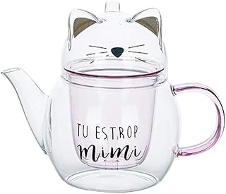 [エージョン] 耐熱ガラス ティーポット 猫のティーポット 耐熱ガラスフラワーティーポット クリエイティブウォーターカップ かわいいファッション アフタヌーンティーティーセット (ティーポット)