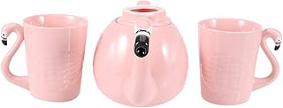 Garneck Ceramics ティーポット フラミンゴ柄 ティーポット 耐熱 セラミック ウォータージャー セット ティーポット 1個 カップ 2個