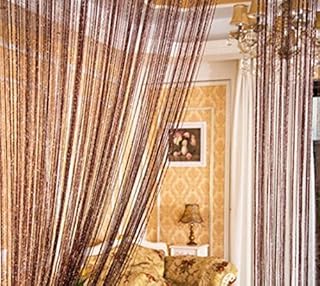 キラキラ光る 紐のれん ストリングカーテン ひものれん 目隠し (ダークブラウン) 95×200cm