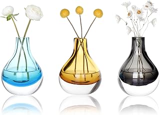 CASAMOTION Bud 花瓶 ホームインテリア フラワーガラス 手吹き 小さな色 ギフト テーブルトップ コーヒー 重厚なセンターピース キッチン アイランド ダイニングテーブル リビングルーム オフィス ブルー アンバー スモーク 高さ5.3インチ 3個セット