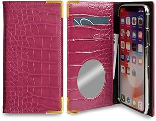 iPod touch 第7世代 2019年モデル ケース 手帳型 マグネットなし クロコダイル柄 ゴールド フレーム ミラー付き カバー (フューシャ) apple アイポッド アイポッドタッチ